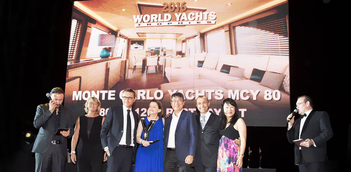 Monte Carlo Yachts has been awarded once again with a prestigious acknowledgement for its product design. The MCY 80, presented to the public at the Cannes Yachting Festival, won the "Best Layout" category in the 80'-120' segment at the World Yacht Trophies organised by Yachts France magazine.