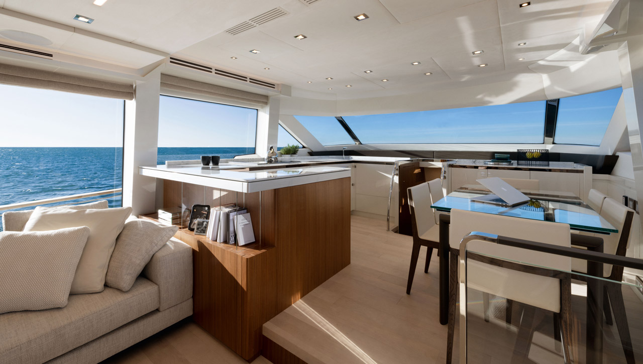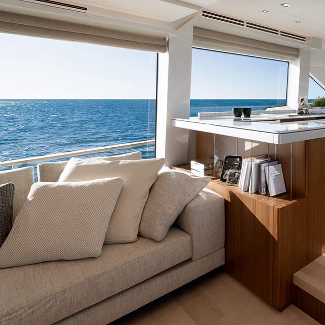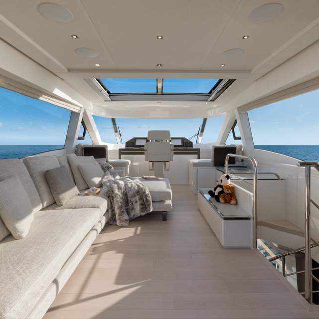 The MCY 70 Skylounge has been designed and crafted with customers’ interests at heart. The complete customizable enclosed Flybridge guarantees owners superlative comfort and maximum privacy onboard, in all seasons, no matter their latitude.