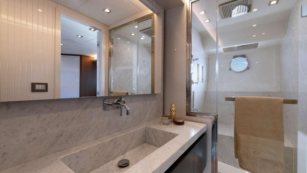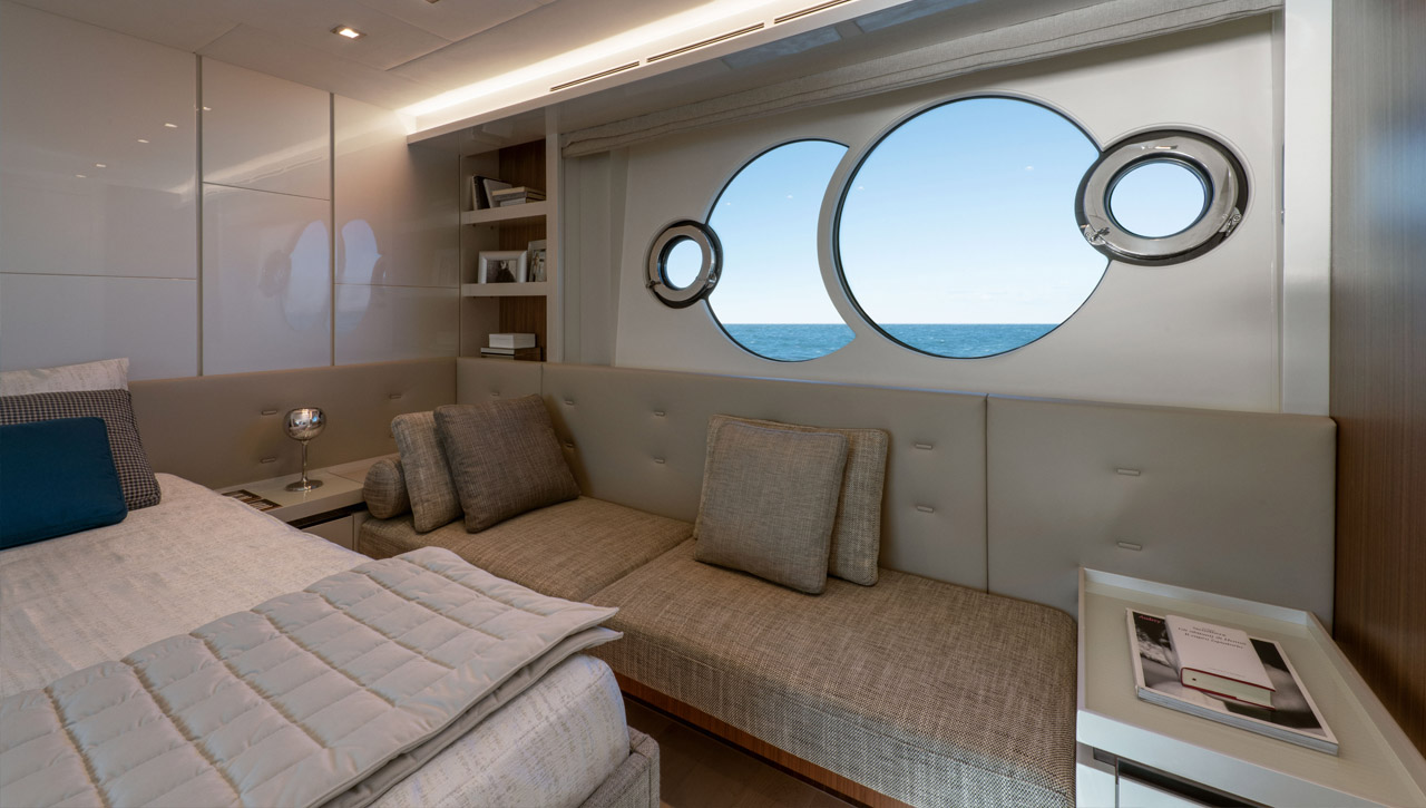 High-end fabrics, natural stones and Italian leathers are just a few of the unlimited customization options available on the MCY 70 Skylounge. It offers comfortable accommodation for the owner’s family and friends, that perfectly embodies the elegant Italian Made design elements of Monte Carlo Yachts.