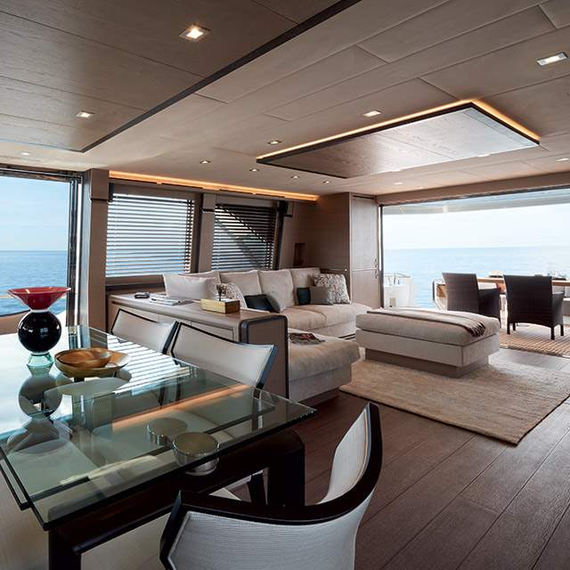 Like with the other yachts in the MCY collection, an instant sense of spaciousness both inside and out becomes immediately apparent upon boarding the MCY 80. The main saloon and the cabins are flooded with natural light and offer lushly appointed and detailed spaces for both social and private moments. The brushed and bleached floorings found throughout set an elegant ambiance that is further enhanced by precious leather and stone features. Design furnishing choices from the best World famous fashion brands from Italy and France complete an interior that is effortlessly modern and tasteful.